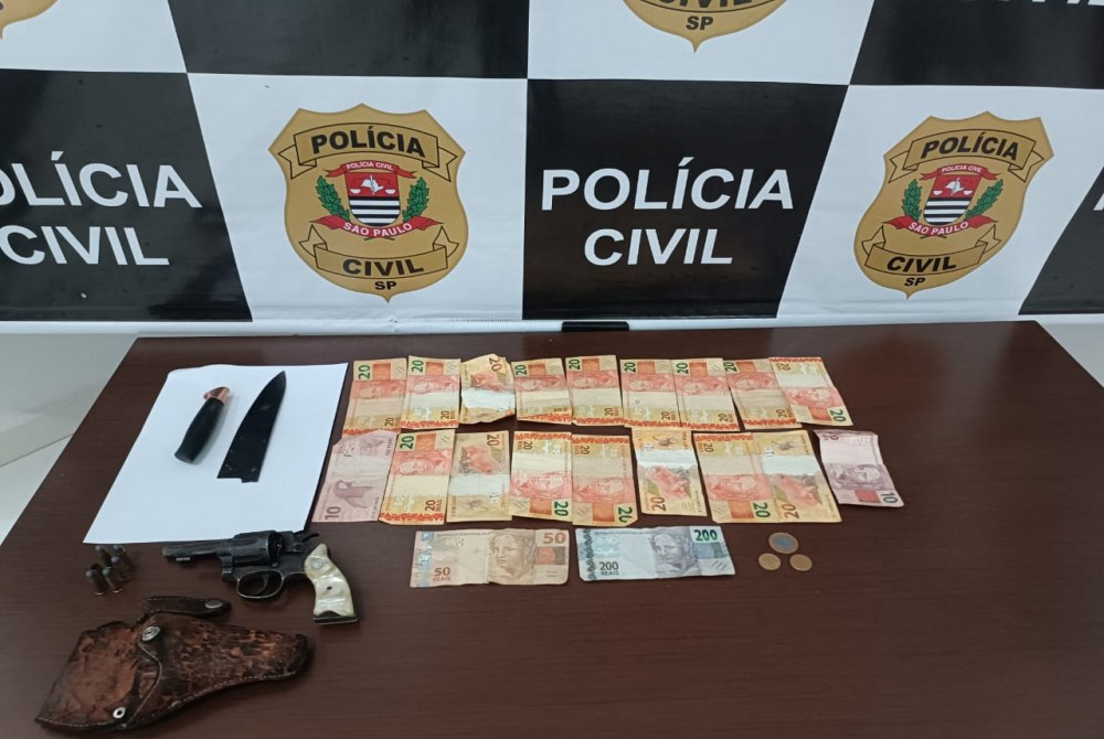 De acordo com informações da Polícia Civil, durante a abordagem, os agentes localizaram com o suspeito um revólver calibre .32, além de uma faca, um coldre e dinheiro em espécie. A arma estava municiada e sem a devida autorização legal.