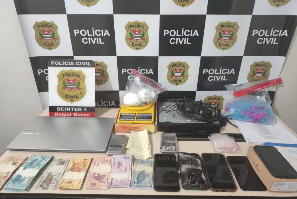No local, dois homens foram presos em flagrante pelos crimes relacionados ao tráfico de entorpecentes. Após a ação, os suspeitos foram conduzidos à Delegacia de Polícia de Garça, onde a ocorrência foi registrada.